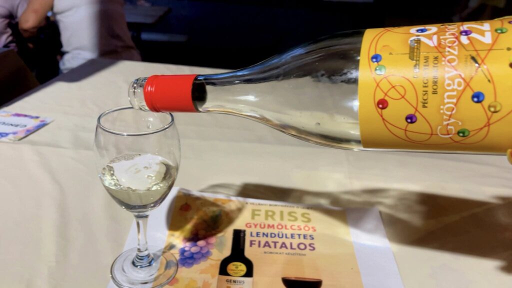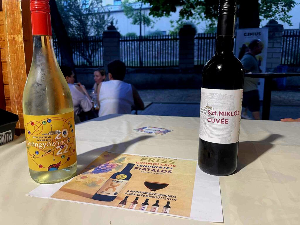 Standunknál az igazi borélmények mellé barátság, közvetlenség és frissítő újdonságok is társultak. Külön öröm volt számunkra, hogy vendégeink megkóstolhatták a Pécsi Egyetemi Borbirtok kiemelkedő borait is – olyan tételeket, amelyek méltán emelik a magyar borászat színvonalát. A Zenit, a karakteres Cirflandi és az elegáns, mélyrétegű Szent Miklós Cuvée egytől egyig sikert arattak, és jólesett látni, milyen sokan tértetek vissza egy-egy újabb kortyért.