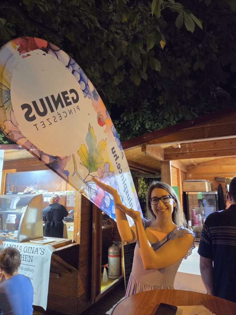És azt se felejtsük el, hogy idén egy különösen kedves meglepetés is ért minket: Johanna, aki már régóta követi a Genius Pincészetet a közösségi médiában, hazautazott Pécsre, hogy a Fényfesztiválon végre személyesen is megkeresse a standunkat! Köszönjük Johanna a lelkesedésed – nagyon jó volt találkozni! 🙌